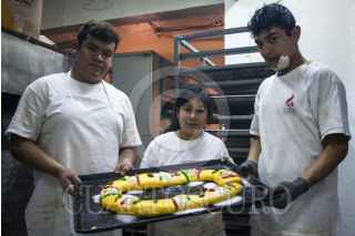 MÉXICO, DF., 06ENERO2014.- Jóvenes en situación de abandono social que habitan en el albergue Fundación Refugio en el Barrio de Tepito, elaboran distintos productos en la Panadería, elaborando en esta ocasión Rosca de Reyes que hacen sobre pedido para sus clientes y de la cual han vendido decenas para poder subsistir. En La Panadería, se realizan también Galletas y Panes de repostería producidos por los jóvenes. FOTO: ENRIQUE ORDÓÑEZ /CUARTOSCURO.COM