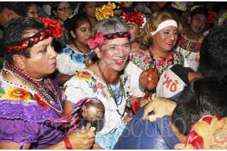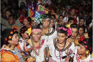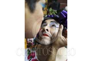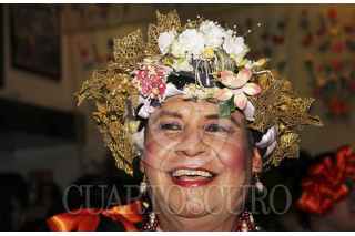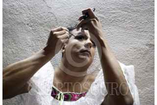 CHIAPA DE CORZO, CHIAPAS, 08ENERO2014.- Año con año Chiapa de Corzo recuerda la leyenda de doña María de Angulo, una mujer criolla que durante la hambruna de 1711 repartió alimentos a los vecinos de esta ciudad en agradecimiento de que los brujos chiapanecos sanaron a su hijo de una enfermedad incurable. En honor a San Sebastián, se lleva a cabo la Fiesta Grande, que da inicio el 8 de enero con el anuncio de las Chuntaes (hombres disfrazados de mujeres, maquillados y arreglados con vistosos trajes de faldas largas y camisas bordadas, portando mascadas en la cabeza, sobre la cual llevan canastas adornadas) quienes bailan al son del Bayashando, con el fin de anunciar las festividades de los santos que se veneran durante el mes de enero: el Señor de Esquipulas, San Antonio Abad, los Patrones Difuntos y San Sebastián. Chunta significa sirviente, y los chuntas que en esta época salen a alegrar las calles de Chiapa de Corzo representan a los sirvientes que hace 300 años repartieron los alimentos (carnes, frutas, verduras) donados por María de Angulo. FOTO: ELIZABETH RUIZ /CUARTOSCURO.COM .