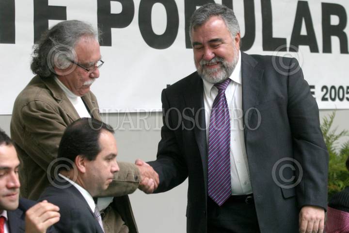 MEXICO, D.F., 17NOVIEMBRE2005.- Carlos Payan Velver y Alejandro Encinas, jefe de Gobierno, durante la firma del Fideicomiso del Museo de Arte Popular, que se ubica en la calle de Independencia y Revillagigedo en el Centro. FOTO: Moisés Pablo/CUARTOSCURO.COM