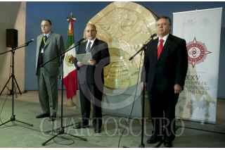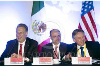 MÉXICO, D.F., 09ENERO2014.- Anthony Wayne, embajador de Estados Unidos en México, Sergio Alcocer, subsecretario para América del Norte y Eduardo Medina Mora, embajador de México en Estados Unidos, durante la XXV Reunión de Embajadores y Cónsules, en la sede de la Secretaria de Relaciones Exteriores. FOTO: CUARTOSCURO.COM