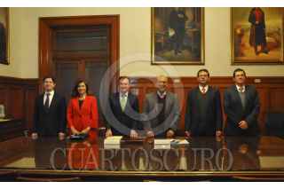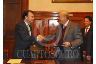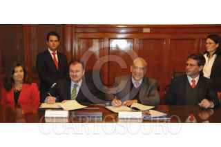 MÉXICO, D.F., 10ENERO2014.- Luis Videgaray Caso, secretario de Hacienda y Crédito Público y José Ángel Gurría, presidente de la Organización para la Cooperación y el Desarrollo Económicos, firmaron un memorándum de entendimiento sobre el centro multilateral de impuestos de la OCDE en México. FOTO: CUARTOSCURO.COM