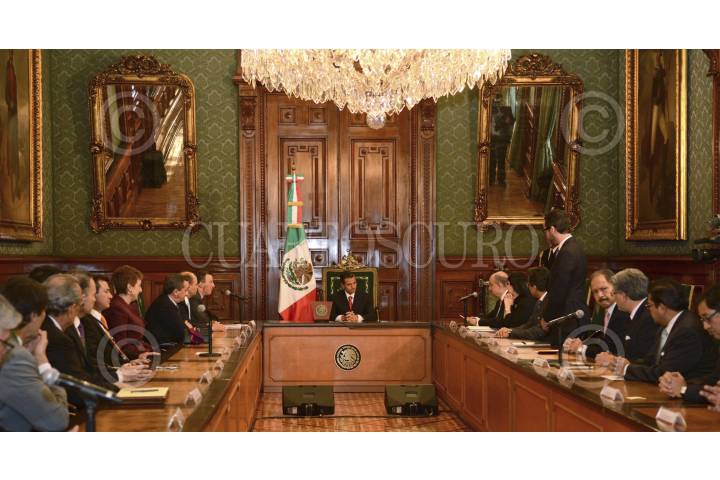 MÉXICO, D.F., 10ENERO2014.- El Presidente de la República, Enrique Peña Nieto, invitó a la diplomacia mexicana a transmitir al mundo que lo que México ha alcanzado no es menor, ya que se trata de un gran avance que debe proyectarse y compartirse con la comunidad internacional. En la imagen lo acompañan José Antonio Meade Kuribreña, secretario de Relaciones Exteriores y Rosario Green, embajadora emérita. FOTO: PRESIDENCIA /CUARTOSCURO.COM