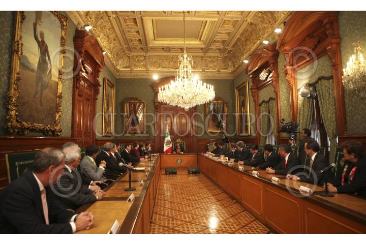 MÉXICO, D.F., 10ENERO2014.- El Presidente de la República, Enrique Peña Nieto, invitó a la diplomacia mexicana a transmitir al mundo que lo que México ha alcanzado no es menor, ya que se trata de un gran avance que debe proyectarse y compartirse con la comunidad internacional. En la imagen lo acompañan José Antonio Meade Kuribreña, secretario de Relaciones Exteriores y Rosario Green, embajadora emérita. FOTO: PRESIDENCIA /CUARTOSCURO.COM