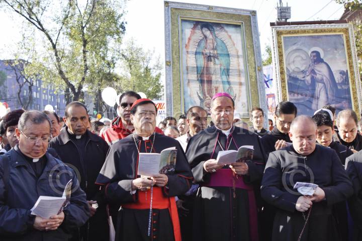 MÉXICO, D.F., 11ENERO2014.- Como cada segundo sábado de este primer mes del año feligreses y clero de la Arquidiócesis de México emprendió su peregrinación anual a la Basílica de Guadalupe, la cual fue encabezado por el arzobispo Norberto Rivera, y partió de la ex glorieta de Peralvillo. FOTO: MOISÉS PABLO /CUARTOSCURO.COM
