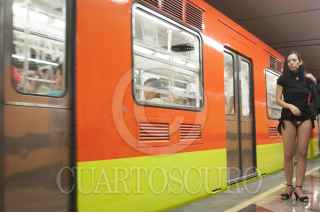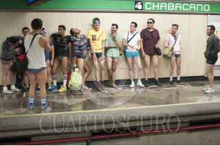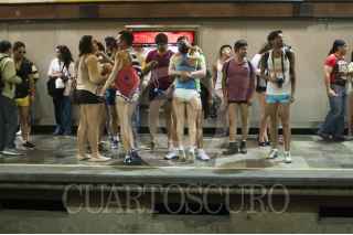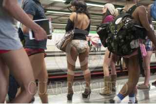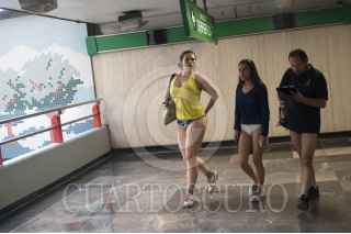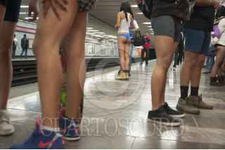 MÉXICO, D.F., 12ENERO2014.- Cientos de capitalinos anduvieron por las estaciones de la línea 1, 9 y 8 del metro sin pantalones como parte de la jornada internacional "Viaje en metro sin pantalones" que, por cuarto año consecutivo, se lleva a cabo en la capital del país. FOTO: IVÁN STEPHENS /CUARTOSCURO.COM
