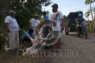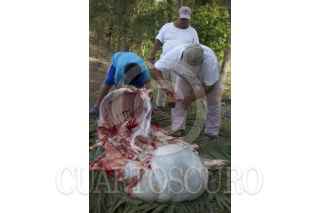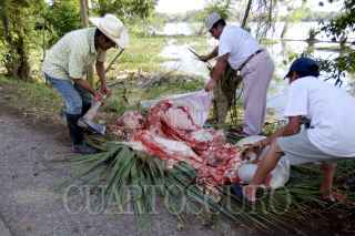 CENTLA, TABASCO, 13ENERO2014.- Habitantes en la ranchería Chichicastle destazaron una res que minutos antes murió ahogada en los caudales del río Usumacinta. Debido a la falta de comida los pobladores se ven en la necesidad de aprovechar al máximo los alimentos. FOTO: MARCO POLO GUZMÁN HERNÁNDEZ/CUARTOSCURO.COM
