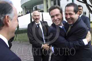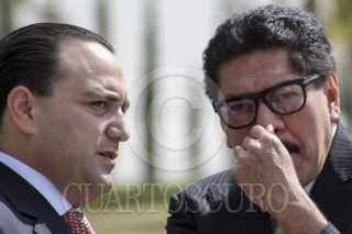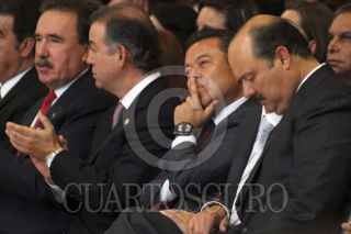 TLAXCALA, TLAX., 14ENERO2014.- Roberto Borge, gobernador de Quintana Roo, y Ulises Ruiz, exgobernador de Oaxaca, conversan al término de la ceremonia del 3er Informe de gobierno de Mariano González Zarur, gobernador del estado. El evento se llevó a cabo en las instalaciones del centro de convenciones de la capital del estado. FOTO: J. GUADALUPE PÉREZ /CUARTOSCURO.COM