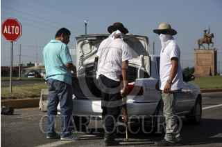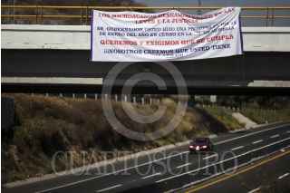 NUEVA ITALIA, MICHOACÁN, 14ENERO2014.- Miembros de los grupos de autodefensa continúan su patrullaje en la zona de Tierra Caliente pese a los llamados de las autoridades locales y federales. Cabe resaltar que civiles no identificados colocaron diversas mantas en puentes de la zona. FOTO: FÉLIX MÁRQUEZ /CUARTOSCURO.COM