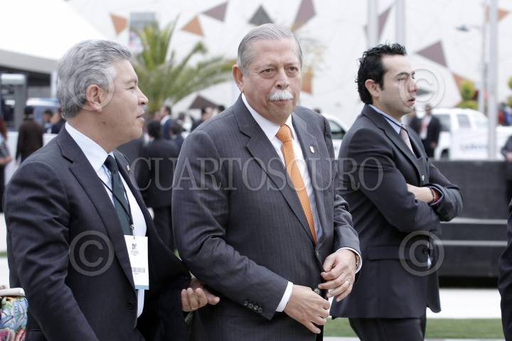 PUEBLA, PUEBLA, 15ENERO2014.- Roberto Zapata Bello, gobernador de Yucatán, a su llegada al tercer informe de labores del gobernador de Puebla, Rafael Moreno Valle en el auditorio de la Reforma de la ciudad. FOTO: HILDA RÍOS/ CUARTOSCURO.COM