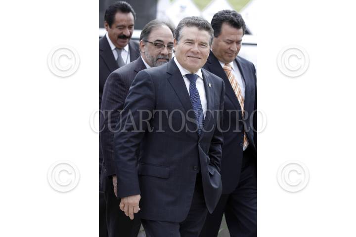 PUEBLA, PUEBLA, 15ENERO2014.- Juan Díaz de la Torre, líder nacional del SNTE a su llegada al tercer informe de gobierno del gobernador Rafael Moreno Valle en el auditorio de la Reforma. FOTO: HILDA RÍOS/ CUARTOSCURO.COM