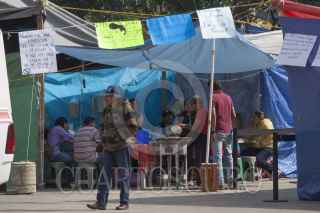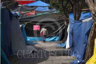 MÉXICO, D.F., 16ENERO2914.- Maestros de la CNTE continúan el su campamento del Monumento a la Revolución el cual ha registrado una disminución en sus ocupantes aunque se anuncio que vendrían mentores de distintas secciones de varios estados. FOTO: ENRIQUE ORDÓÑEZ /CUARTOSCURO.COM