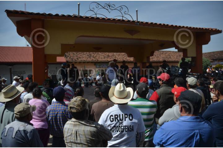 TANCÍTARO, MICHOACÁN, 16ENERO2014.- El día de hoy les fueron regresadas más 25 huertas, dando un total de 265 hectáreas de aguacate a sus propietarios, estas fueron arrebatadas por los Caballeros Templarios hace más de un año en la cabecera de este municipio, las huertas fueron devueltas por el vocero de las Autodefensas Estanislao Beltran, alias El Papá Pitufo. FOTO: ALAN ORTEGA /CUARTOSCURO.COM