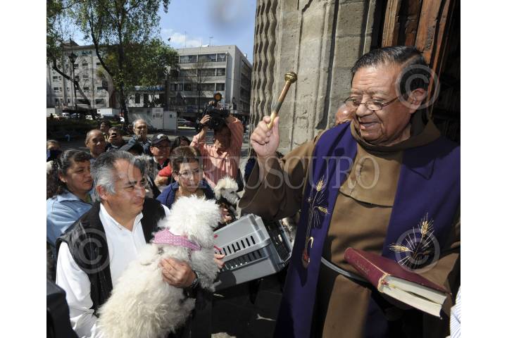 MÉXICO, D.F., 17ENERO2014.- Decenas de mascotas fueron bendecidas en la Iglesia de San Fernando en el marco de la celebración del día de San Antonio Abad; pericos, perros y gatos fueron llevados por sus dueños para que recibieran la unción. FOTO: LUIS CARBAYO /CUARTOSCURO.COM