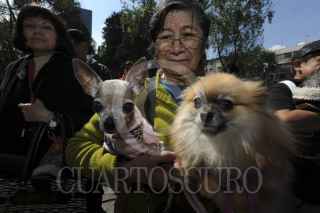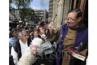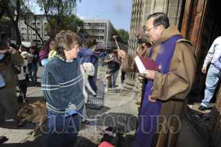 MÉXICO, D.F., 17ENERO2014.- Decenas de mascotas fueron bendecidas en la Iglesia de San Fernando en el marco de la celebración del día de San Antonio Abad; pericos, perros y gatos fueron llevados por sus dueños para que recibieran la unción. FOTO: LUIS CARBAYO /CUARTOSCURO.COM