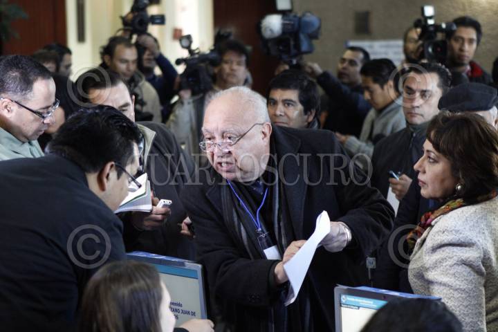 MÉXICO, D.F., 18ENERO2014.- Juan de Dios Castro protesto a la hora de registrarse por un supuesto fraude en la orden del día al aseverar que se ponían acuerdos que no habían sido aprobados por el Consejo Nacional. FOTO: MOISÉS PABLO /CUARTOSCURO.COM