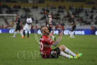 GUADALAJARA, JALISCO, 18ENERO2013.- En la imagen jugadores del Atlas desconcertados por la derrota de esta noche en el Estadio Jalisco de esta ciudad, en partido correspondiente a la Jornada 3 de la Liga MX del Torneo Clausura 2014, en donde se enfrentaron los equipos de los Zorros del Atlas frente a los Potros del Atlante y en donde el equipo visitante se lleva la victoria de 1-0. FOTO: FERNANDO CARRANZA GARCIA /CUARTOSCURO.COM