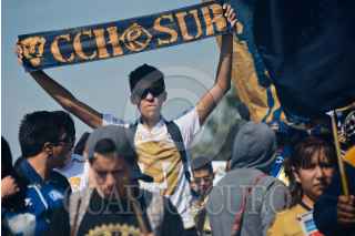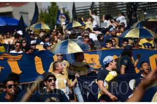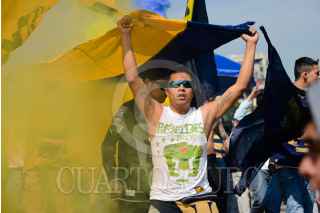 MÉXICO, D.F., 19ENERO2014.- Aspectos de la llegada de la barra brava del Club Universidad Nacional, La Rebel, mientras festejaban, antres del comienzo del partido, sus 16 años de existencia, esta barra se creó el 18 de enero de 1998. FOTO: PEDRO ANZA /CUARTOSCURO.COM