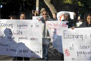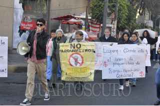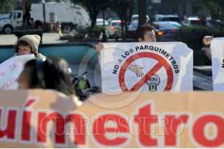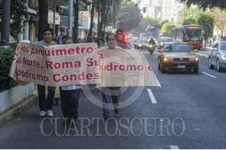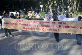 MÉXICO, D.F., 20ENERO2014.- Vecinos de la colonia Condesa, Roma e Hipódromo, realizaron una marcha del Parque México rumbo a la avenida Insurgentes donde caminaron de la calle Sonora hasta Álvaro Obregón, la manifestación se realizó por el primer aniversario de la colocación de parquimetros en la zona, los vecinos se declaran en contra de la empresa Ecoparq, argumentando que esta no ha solucionado los problemas de vialidad e inseguridad a los que se había comprometido junto con el gobierno. FOTO: DIEGO SIMÓN SÁNCHEZ /CUARTOSCURO.COM