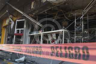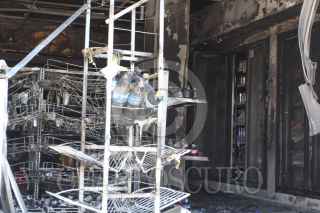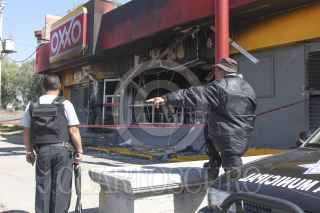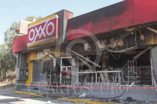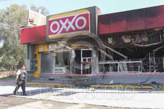 LOS REYES ACOZAC, ESTADO DE MÉXICO; 20ENERO2014.- Continúan resguardados por elementos de corporaciones policíacas las tiendas OXXO que fueron atacadas e incendiadas la noche de ayer por sujetos armados en el estado de Hidalgo y Estado de México. FOTO: SAÚL LÓPEZ /CUARTOSCURO.COM
