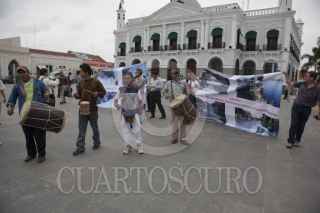 VILLAHERMOSA, TABASCO, 21ENERO2014.- Un grupo de habitantes de la ranchería Puerto Ceiba, Paraíso, que representan a más de siete mil habitantes se manifestaron afuera de Palacio de Gobierno con unas pancartas en las que muestran fotografías de la mala calidad de vida social y urbana en la que viven. Los lugareños dedicados a la pesca y labores del campo buscaron el dialogo con Arturo Núñez Jiménez, quien no los atendió por lo que aseguraron cerraran la carretera federal que conduce del entronque con Centla hasta Comalcalco a la altura del tramo turístico El Bellote-Puerto Ceiba debido a la contaminación de PEMEX y el desorden urbano con sus calles. FOTO: MARCO POLO GUZMÁN HERNÁNDEZ /CUARTOSCURO.COM