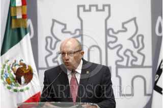 MÉXICO, D.F., 21ENERO2014.- Simón Newman, secretario de Desarrollo Urbano y Vivienda, durante la ceremonia de entrega de cinco obras públicas; Plaza Fundación, Parque de Bolsillo Tlaxcoaque, calle 16 de Septiembre, Callejón Hamburgo y Jardín de las Quinceañeras, las primeras cuatro en la delegación Cuauhtémoc y la última en la delegación Magdalena Contreras. FOTO: MOISÉS PABLO /CUARTOSCURO.COM