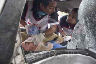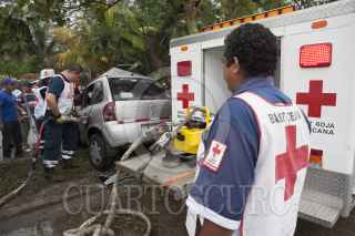 VILLAHERMOSA, TABASCO, 22ENERO2014.- Un joven de aproximadamente 28 años de edad fue atendido tras impactarse contra el tronco de un árbol en donde quedó prensado. Intentó primeramente esquivar una roca lo que lo llevó a impactarse. Paramédicos de la Cruz Roja acudieron al lugar y realizaron los primeros auxilios, posteriormente el hombre fue trasladado de gravedad. El hecho se registró en las inmediaciones del periférico Carlos Pellicer Cámara a la altura de la colonia José María Pino Suárez. FOTO: MARCO POLO GUZMÁN HERNÁNDEZ /CUARTOSCURO.COM