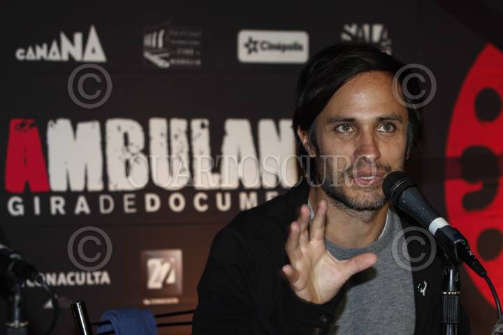 MÉXICO, D.F., 22ENERO2014.- El actor Gael Garcia durante la conferencia de prensa de Ambulante Gira de Documentales que se realizó en un cine del Paseo de la Reforma. FOTO: RODOLFO ANGULO /CUARTOSCURO.COM