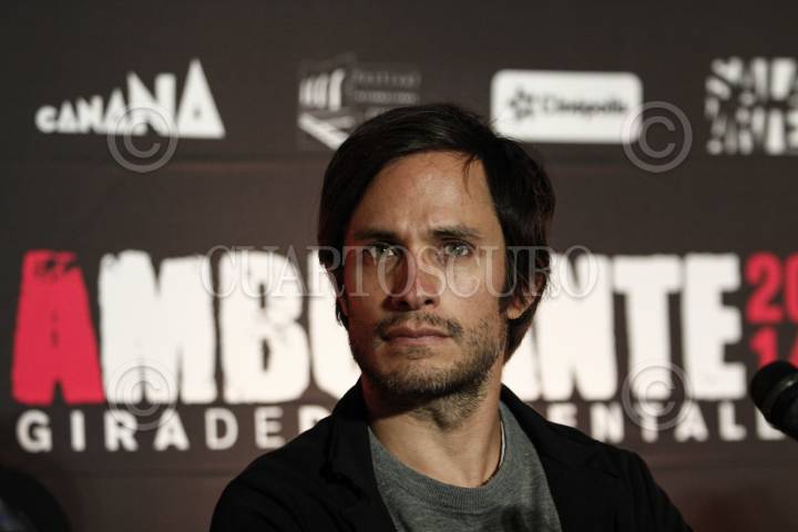 MÉXICO, D.F., 22ENERO2014.- El actor Gael Garcia durante la conferencia de prensa de Ambulante Gira de Documentales que se realizó en un cine del Paseo de la Reforma. FOTO: RODOLFO ANGULO /CUARTOSCURO.COM