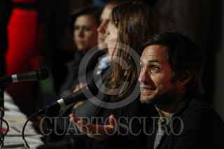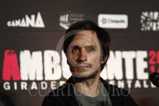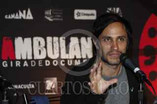 MÉXICO, D.F., 22ENERO2014.- El actor Gael Garcia durante la conferencia de prensa de Ambulante Gira de Documentales que se realizó en un cine del Paseo de la Reforma. FOTO: RODOLFO ANGULO /CUARTOSCURO.COM