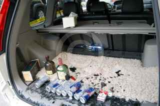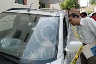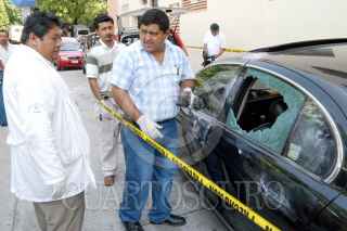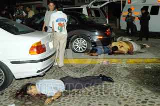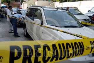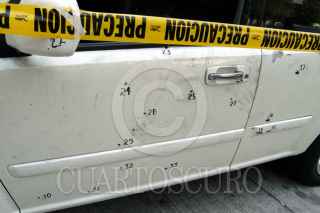 ACAPULCO,GUERRERO.-24NOVIEMBRE2005.- La camioneta Nissan X-TRAIL en la que se encontraban unos de los cuatro asesinados la madrugada del Jueves y sus contenidos. Foto: Eric Miralrío/CUARTOSCURO.COM