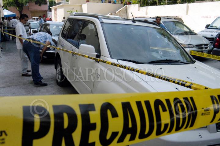 ACAPULCO,GUERRERO.-24NOVIEMBRE2005.- La camioneta Nissan X-TRAIL en la que se encontraban unos de los cuatro asesinados la madrugada del Jueves y sus contenidos. Foto: Eric Miralrío/CUARTOSCURO.COM