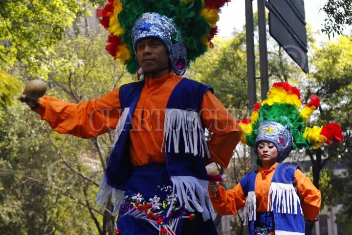 MÉXICO, D.F., 23ENERO2014.- Danzantes bailan la danza de Ojo de Agua de Coahuila frente las instalaciones de la PGR, cómo parte de una jornada de protesta de integrantes del Movimiento Antorchista Nacional del Estado de México para exigir a las autoridades correspondientes el rescate de Manuel Serrano, padre de la alcaldesa de Ixtapaluca, Maricela Serrano, quien fue secuestrado el pasado 6 de octubre, por motivos políticos y no económicos ya que sus captores exigen que Maricela Serrano abandone su actividad política, según lo señalado por los manifestantes. FOTO: MOISÉS PABLO /CUARTOSCURO.COM