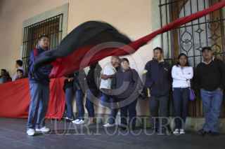 OAXACA, OAXACA, 24ENERO2014.- Integrantes del Sindicato de Trabajadores y Empleados de la Universidad Autónoma Benito Juárez de Oaxaca (Steuabjo) realizaron un cerco al palacio de gobierno el cual tuvo una duración aproximada de 5 horas, lo anterior para exigir al gobierno del estado y a las autoridades universitarias den respuesta a su pliego petitorio y así se evite el estallamiento a huelga programado para el primer minuto del mes de febrero. FOTO: ARTURO PÉREZ ALFONSO /CUARTOSCURO.COM