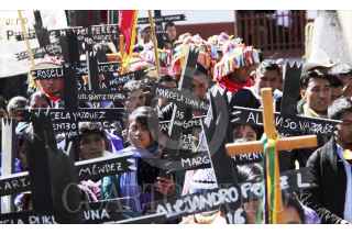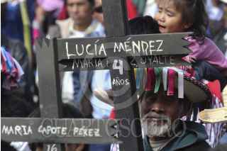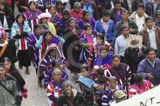 SAN CRISTOBAL DE LAS CASAS, CHIAPAS 25ENERO2014.- Miles de indígenas de las diferentes etnias de Los Altos de Chiapas y otras regiones de la entidad realizaron una peregrinación que concluyó con una misa en la plaza de San Cristóbal de Las Casas, para recordar así la memoria del obispo Samuel Ruiz García, fallecido hace 3 años,quien se desempeñó durante 40 años como obispo de la Diócesis de San Cristóbal, en la región Altos, una de las más grandes de Chiapas, con una población mayoritariamente indígena. Agrupados en la organización “Pueblo Creyente de la Diócesis de San Cristóbal de Las Casas”, unos diez mil indígenas tzotziles, tzeltales, choles, tojolabales y de otras etnias asi como un grupo de la comunidad de Acteal y del ejido Puebla, marcharon para recordar al obispo, a quien llamaron Jtatik (padre en tzotsil) y El Caminante por haber sido e religioso que más caminó entre las comunidades de las 42 parroquias de su circunscripción., también los participantes en el congreso de la madre tierra celebrado esta semana en la ciudad participaron en la peregrinación y terminaron con una misa en la Catedral. FOTO: ELIZABETH RUIZ /CUARTOSCURO.COM