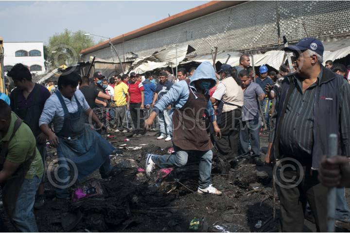 MÉXICO, D.F., 26ENERO2014.- Locatarios y vecinos del Mercado de la Merced acudieron a levantar escombros luego de que se suscitó un incendio que consumió parte del Mercado de Dulces del Mercado Ampudia ubicado entre las calles Santa Escuela, Rosario y General Anaya, así como negocios aledaños. FOTO: IVÁN STEPHENS /CUARTOSCURO.COM