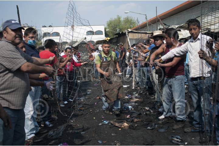 MÉXICO, D.F., 26ENERO2014.- Locatarios y vecinos del Mercado de la Merced acudieron a levantar escombros luego de que se suscitó un incendio que consumió parte del Mercado de Dulces del Mercado Ampudia ubicado entre las calles Santa Escuela, Rosario y General Anaya, así como negocios aledaños. FOTO: IVÁN STEPHENS /CUARTOSCURO.COM