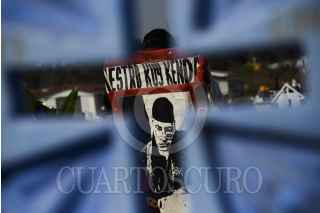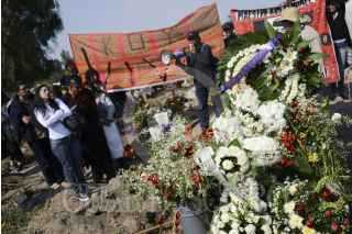MÉXICO, D.F., 25ENERO2014.- Juan Francisco Kuy Kendall, dramaturgo, director y profesor de teatro, fue sepultado esta tarde en el panteón de San lorenzo Tezonco en compañía de familiares, amigos y alumnos. Kuy Kendall falleció el día de ayer a las cinco de la mañana después de haber permanecido en estado de coma por poco mas de un año tras recibir un impacto con un arma por parte de la policía el primero de Diciembre del 2012, durante la manifestación realizada por diversas organizaciones sociales y estudiantiles durante la toma de protesta de Enrique Peña Nieto. A poco mas de un año, el caso sigue impune. FOTO: PEDRO ANZA /CUARTOSCURO.COM