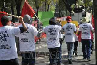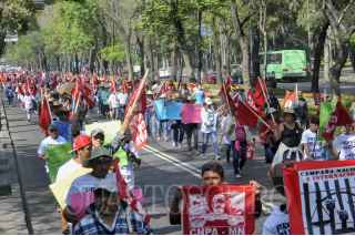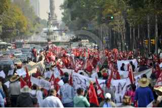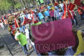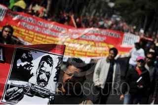MÉXICO, D.F., 28ENERO2014.- Cientos de integrantes de la Coordinadora Nacional del Plan de Ayala provenientes de 14 estados del país, marcharon del Auditorio Nacional rumbo al monumento a la Revolución para exigir a el gobierno federal la libertad de más de 20 presos políticos integrantes de guardias comunitarias en Aquila, Michoacán. FOTO: DIEGO SIMÓN SÁNCHEZ /CUARTOSCURO.COM