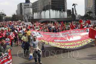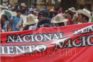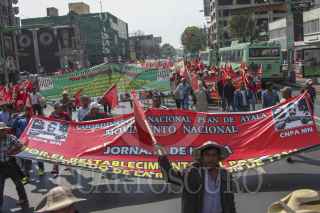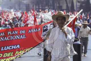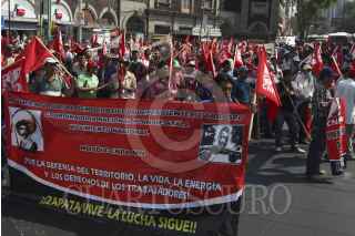 MÉXICO, D.F., 28ENERO2014.- Integrantes de la Coordinadora Nacional Plan de Ayala, marcharon por diversas avenidas de la ciudad rumbo al Monumento a la Revolución para exigir al gobierno defienda el territorio, la energía y los derechos de los trabajadores de México. FOTO: SAÚL LÓPEZ /CUARTOSCURO.COM