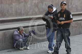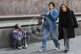 MÉXICO, D.F., 28ENERO2014.- Un indígena se gana la vida tocando canciones a las afueras de la sede de correos de México ubicado sobre la avenida Eje Central. FOTO: SAÚL LÓPEZ /CUARTOSCURO.COM