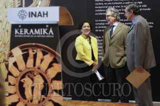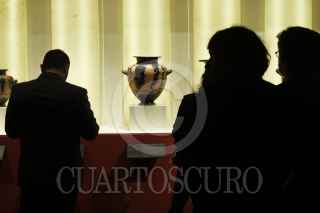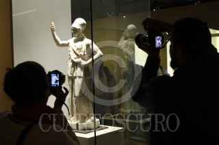MÉXICO, D.F., 28ENERO2014.- Proveniente de las colecciones del Museo del Louvre, en Francia, la exposición "Keramiká materia divida de la antigua Grecia", iniciará las celebraciones por el 75 aniversario del Instituto Nacional de Antropología e Historia. La muestra será inaugurada el 28 de enero y reúne 94 piezas de mas de dos mil años de antigüedad, la mayoría cerámica, ademas de cinco esculturas de mármol. La exposición aborda el universo de la mitología griega, el cual fue plasmado por los artistas griegos en escenas protagonizadas por dioses como Zeus, Hera, Apolo y Dionisio, así como en acontecimientos mundanos como el matrimonio o los funerales. FOTO: MOISÉS PABLO /CUARTOSCURO.COM