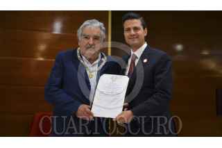 LA HABANA, CUBA, 28ENERO2014.- Al imponer la Condecoración de la Orden Mexicana del Águila Azteca al Presidente de la República Oriental del Uruguay, José Mujica, el Presidente Enrique Peña Nieto afirmó que “tenemos que seguir soñando y creando, día a día, la región audaz, moderna y competitiva que anhelamos”. FOTO: PRESIDENCIA /CUARTOSCURO.COM