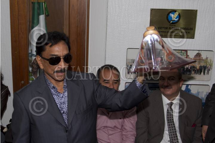 MÉXICO, D.F., 28ENERO2014.- Víctor Flores, Secretario General del Sindicato de Ferrocarrileros y Carmen Salinas, actriz, recibieron un reconocimiento por parte de la Asociación Nacional de Locutores, en las instalaciones de está asociación. FOTO: GUILLERMO PEREA /CUARTOSCURO.COM