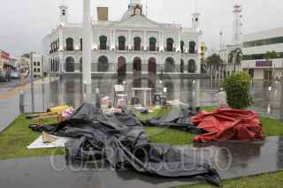 VILLAHERMOSA, TABASCO, 29ENERO2014.- Un grupo de manifestantes, entre ellos una mujer que se había encadenado en los herrajes del acceso al Palacio de Gobierno, fueron desalojados esta madrugada por elementos de las fuerzas especiales de Seguridad Pública. Julio César Álvarez, presidente de la asociación México Despierta, informó que fueron agredidos físicamente por las autoridades, quienes acudieron al lugar encapuchados. FOTO: MARCO POLO GUZMÁN HERNÁNDEZ /CUARTOSCURO.COM