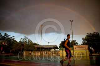 CULIACÁN,SINALOA 29ENERO2014: Después de una lluvia inesperada, se pudo observar el fenómeno meteorológico llamado arco iris, dicho fenómeno aparece cuando los rayos de sol atraviesan pequeñas gotas de agua contenidas en las atmósfera, esto da como resultado un arco con multicolor que va dése el color rojo en el exterior hasta el violeta hacia el interior. FOTO:RASHIDE FRIAS/CUARTOSCURO.COM