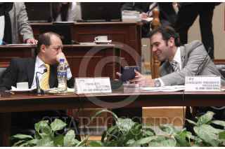 MÉXICO, DF., 29ENERO2014.- El consejero electoral Marco Antonio Baños Martínez y el Consejero Presidente Provisional, Lorenzo Córdova Vianello durante la sesión extraordinaria del instituto. FOTO: IFE /CUARTOSCURO.COM