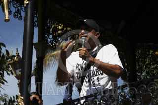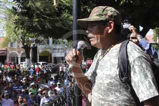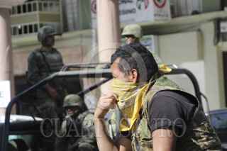 LOS REYES, MICHOACÁN, 29ENERO2014. Al medio día se realizo un mitin en el zócalo del municipio, en donde sucedió algo histórico, movimientos de Rondas Comunitarias y Grupos de Autodefensa compartieran un mismo municipio. FOTO: JUAN JOSÉ ESTRADA SERAFÍN /CUARTOSCURO.COM