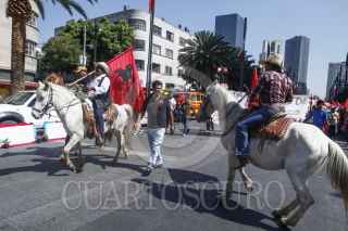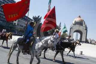 MÉXICO, D.F., 30ENERO2014.- Integrantes del Frente Popular Francisco Villa realizaron un mitin en el Monumento a la Revolución en el marco del 25 aniversario del Frente en donde demandaron libertad a los presos políticos. FOTO: RODOLFO ANGULO /CUARTOSCURO.COM