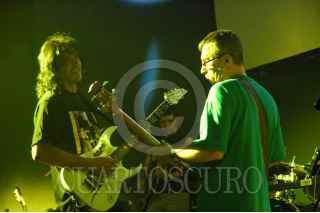 VERACRUZ,VERACRUZ.-25NOVIEMBRE2005.- Felipe Stati en la guitarra y Marciano Cantero, voz, integrantes del grupo de rock argentino "Enanitos Verdes", durante una presentación en conocido antro del puerto de Veracruz la noche de ayer. FOTO: Isaac Aguilar/CUARTOSCURO.COM