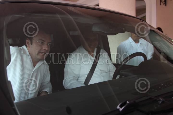 MERIDA, YUCATAN, 30ENERO2014.- Luis Videgaray Caso, Secretario de Hacienda y el gobernador Rolando Zapata a su salida de la IV Plenaria de Senadores del PRI y PVEM. FOTO: SAÚL LÓPEZ /CUARTOSCURO.COM